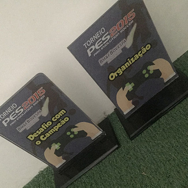 3 Unidades Personalizadas Além de organizar seu campeonato corporativo ou na festa de aniversário,a AlugaGames personaliza troféus para premiar os melhores jogadores.Uma lembrança inesquecível!