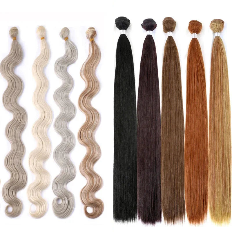 JN043 - Straight Bundles Salon Natural Extensions Fake Fibers Super Long Synthetic Yaki Straight Weaving Full to End